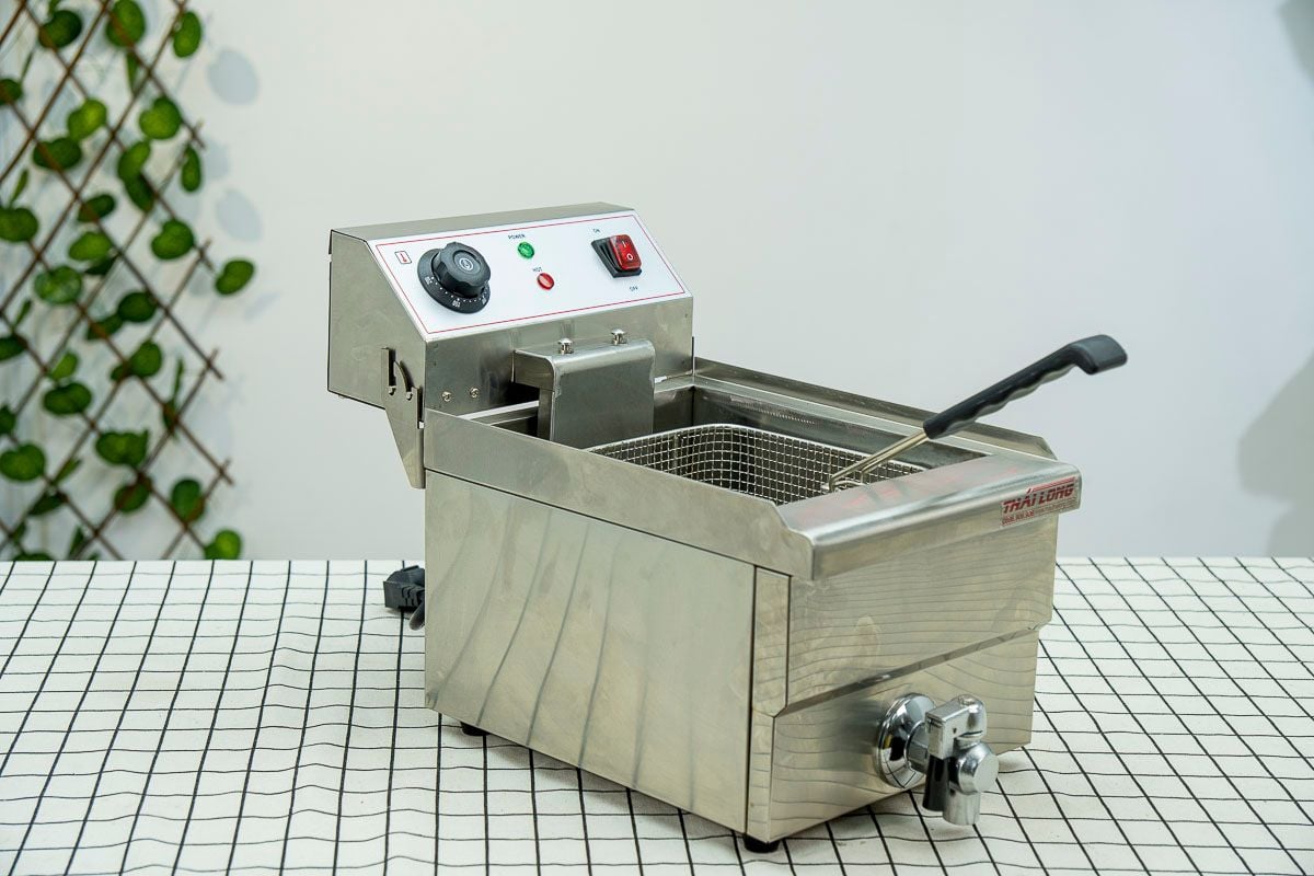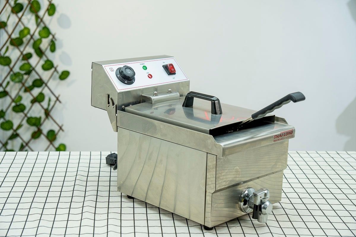 Từ khoai tây chiên, cánh gà, chả cá đến tôm lăn bột, Bếp chiên nhúng đơn 10 lít Thái Long (Mã EF-101V) đáp ứng mọi món ăn. Sản phẩm lý tưởng cho nhà hàng, quán ăn nhanh, xe đồ ăn lưu động hay cơ sở sản xuất thực phẩm. Với độ bền và hiệu suất cao, đây là khoản đầu tư lâu dài cho mọi doanh nghiệp ẩm thực của bạn.