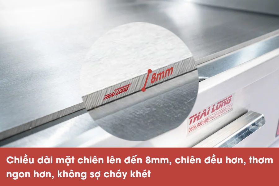 Với chiều dày của mặt chiên lên đến 8mm sẽ chiên thực phẩm đều hơn, thơm ngon hơn mà không phải lo cháy xem hay bị quá nhiệt.