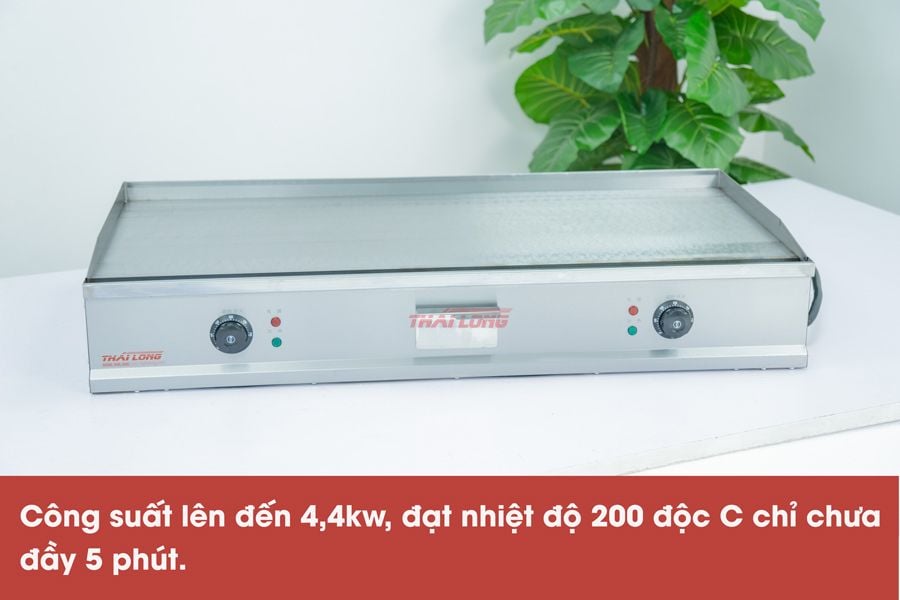 Kích thước của bếp chiên phẳng dùng điện lên đến 100x50 (cm) nên sẽ giúp bạn có nhiều diện tích để chiên khối lượng lớn thực phẩm cùng một lúc.