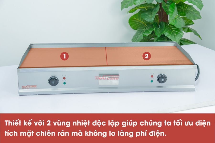 Thiết kế với 2 vùng nhiệt độc lập giúp chúng ta tối ưu diện tích mặt chiên rán mà không lo lãng phí điện.