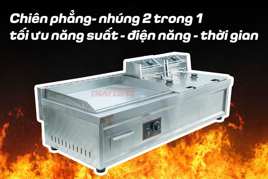 Dòng Bếp tích hợp chiên phẳng + nhúng tuy hơi cồng kềnh về kích thước nhưng đổi lại ưu điểm hơn so với việc mua rời 2 loại bếp chiên này: