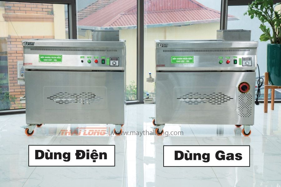 Bên cạnh đó, Máy Thái Long còn phối thêm bếp chiên tách dầu 35L dùng Gas, phù hợp với từng yêu cầu khách hàng, dễ dàng lựa chọn.