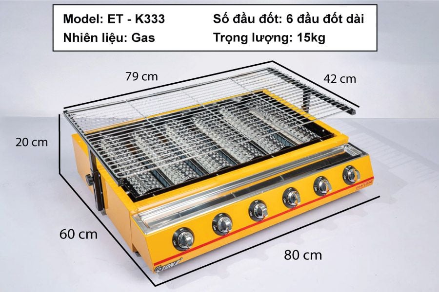Thông số sản phẩm Bếp nướng Gas 6 họng dài ET-K333