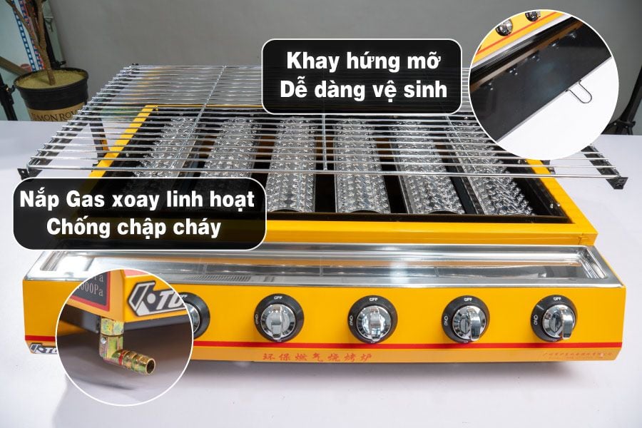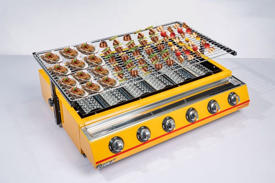 Bếp nướng Gas 6 họng dài - Nướng hàu, thịt xiên, hải sản [Chính hãng ETON ET-K333]