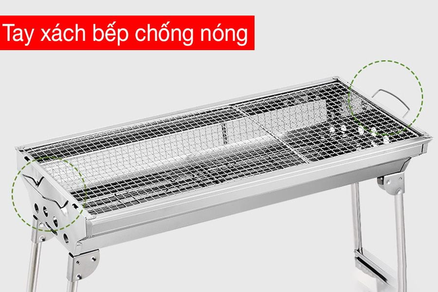Chiều cao của bếp là 70cm, tương đương với các chiều cao tiêu chuẩn của mọi bàn bếp nên khi nướng có thể đứng mà không phải cúi người rất tiện lợi và dễ dàng thao tác. Chân của bếp có thể dễ dàng gấp gọn lại nên mang đi mang lại rất tiện lợi, nhất là các buổi đi picnic, dã ngoại hay là các bữa tiệc nướng ngoài trời, hay trên sân thượng gia đình bạn.