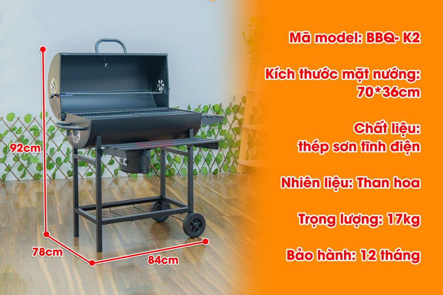 Thông số sản phẩm Bếp nướng than hoa ngoài trời BBQ- K2