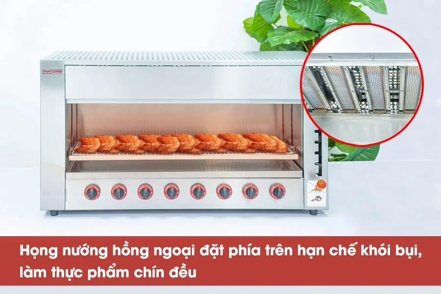 Nhờ thiết kế với giàn đốt hồng ngoại và khoang nướng kín đáo, lò cho phép nướng ở bên ngoài vỉa hè mà không bị ảnh hưởng bởi gió tạt, giữ cho nhiệt độ ổn định. Điều này giúp thực khách dễ dàng quan sát đồ nướng và tạo ra một trải nghiệm ấn tượng, từ đó giúp nhà hàng, quán ăn tăng được doanh thu.