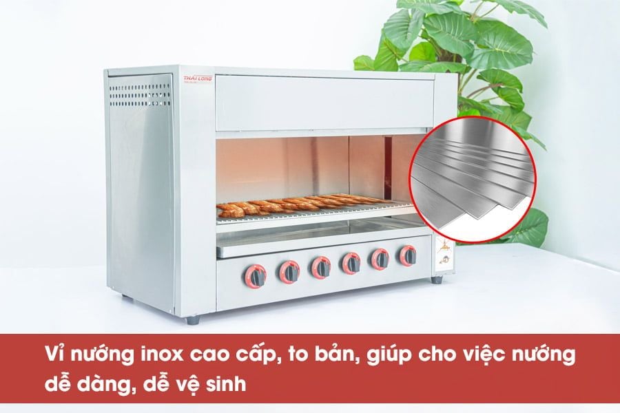 Với vỉ nướng toàn bộ làm từ inox cao cấp, có kích thước lớn và khá chắc chắn, lò nướng này đem lại sự thuận tiện khi nướng thực phẩm. Khay hứng dầu mỡ cũng được làm từ inox, dễ dàng mang đi vệ sinh, giúp duy trì môi trường nấu an toàn và vệ sinh cho thực phẩm.