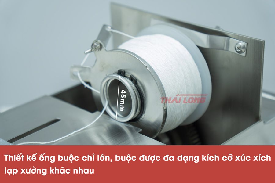 Thiết kế ống buộc chỉ lớn, nên có thể buộc được nhiều kích cỡ xúc xích, lạp xưởng khác nhau. Điều này giúp bạn sản xuất được đa dạng sản phẩm hơn, đáp ứng được nhiều nhu cầu hơn cho người tiêu dùng.