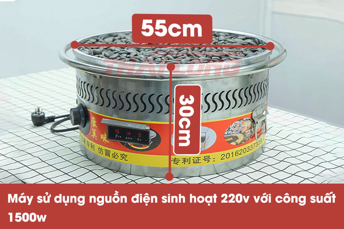 Với kích thước nhỏ gọn, máy có đường kính 55cm và chiều cao khoảng 30cm, cùng với công suất 1500w và sử dụng điện áp 1 pha 220v tiêu chuẩn, nên bạn có thể dễ dàng mang theo và sử dụng ở bất kỳ đâu mà bạn mong muốn.