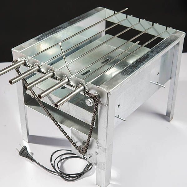 Máy nướng thịt mini là thiết bị rất cần thiết cho các gia đình, đôi khi có thể ở các tiệm ăn nhỏ . Máy có thể nướng gà, nướng vịt và nướng thịt xiên... bằng than hoa. Có mô tơ quay sử dụng điện gia đình 220V, các món nướng bằng máy nướng thịt sẽ vô cùng thơm ngon và hấp dẫn.