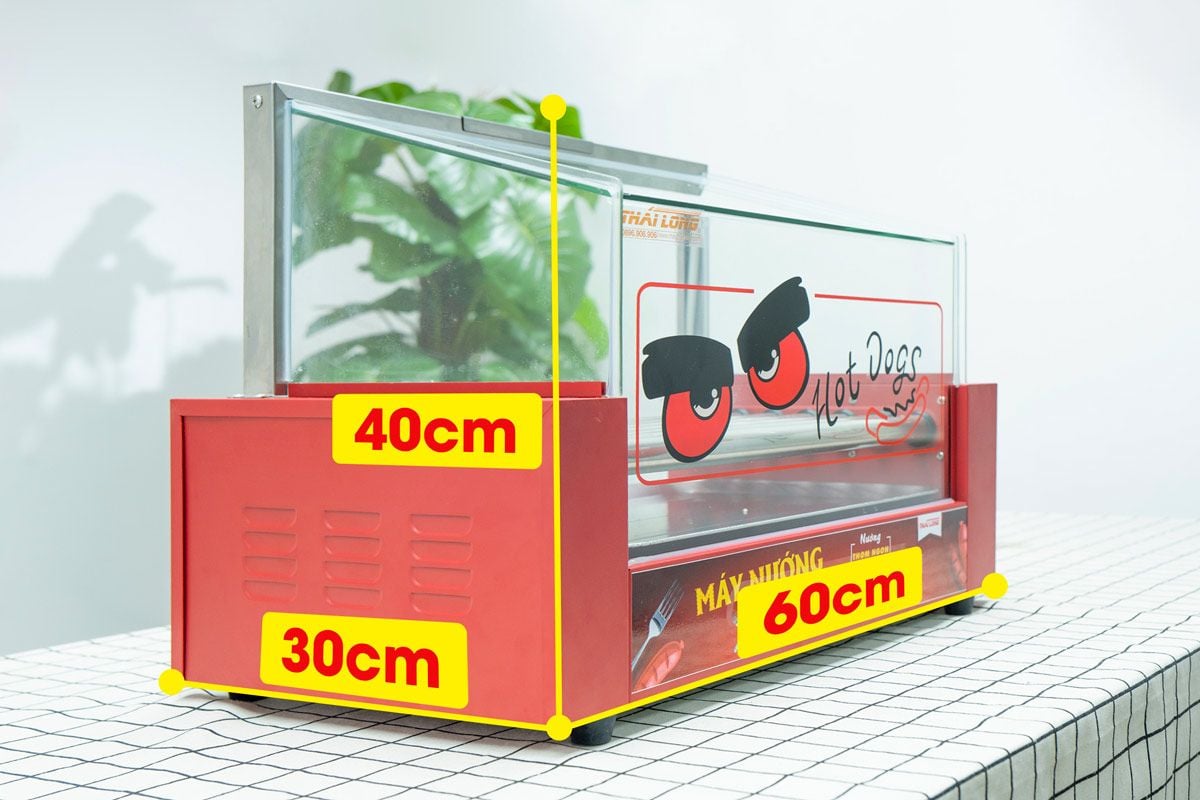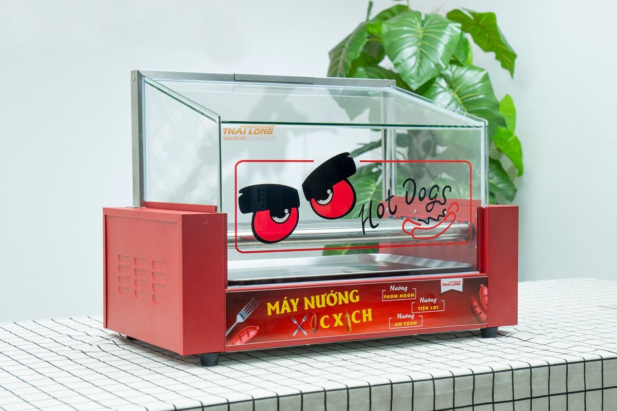 Máy có thiết kế gọn gàng, đẹp mắt với thiết kế các mặt kính vuông tự nhiên. Toàn bộ mặt kính của máy cũng đều là kính cường lực trong suốt, chịu lực, chịu nhiệt tốt, lại giúp cho quá trình nướng xúc xích nhanh hơn. Nhưng điểm đặc biệt là toàn bộ mặt kính, sẽ giúp cho khách hàng có thể quan sát được toàn bộ xúc xích trong khoang hấp dẫn như thế nào. Cộng thêm trên đỉnh máy là một bóng đèn LED giúp xúc xích trở nên hấp dẫn hơn hẳn ngay cả trong các điều kiện thiếu ánh sáng như là buổi tối chẳng hạn. Từ đó trực tiếp mang về doanh thu cho cửa hàng của bạn.